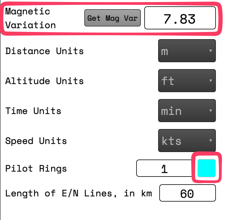 The magnetic variation button is now fully operational. If you have turned on the GPS for LtaGo! your location will be used for determining the magnetic variation. It is important to note that this will include altitude which can affect the result considerably. If GPS is off the coordinates of the center from the current map view will be used with an altitude of ZERO.